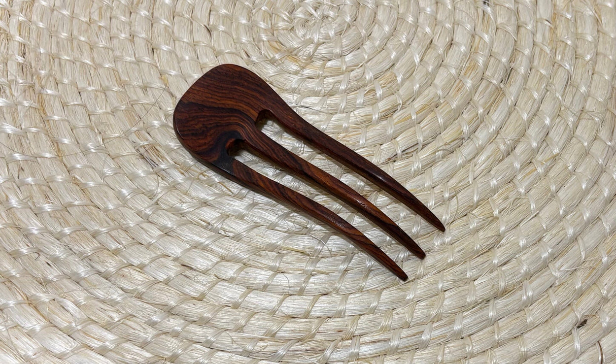 Our Wooden Hair Pin is handmade of granadillo wood in Oaxaca, Mexico and can be used as a travel comb or a a beautiful yet functional piece at home.