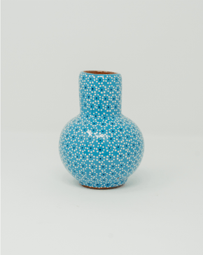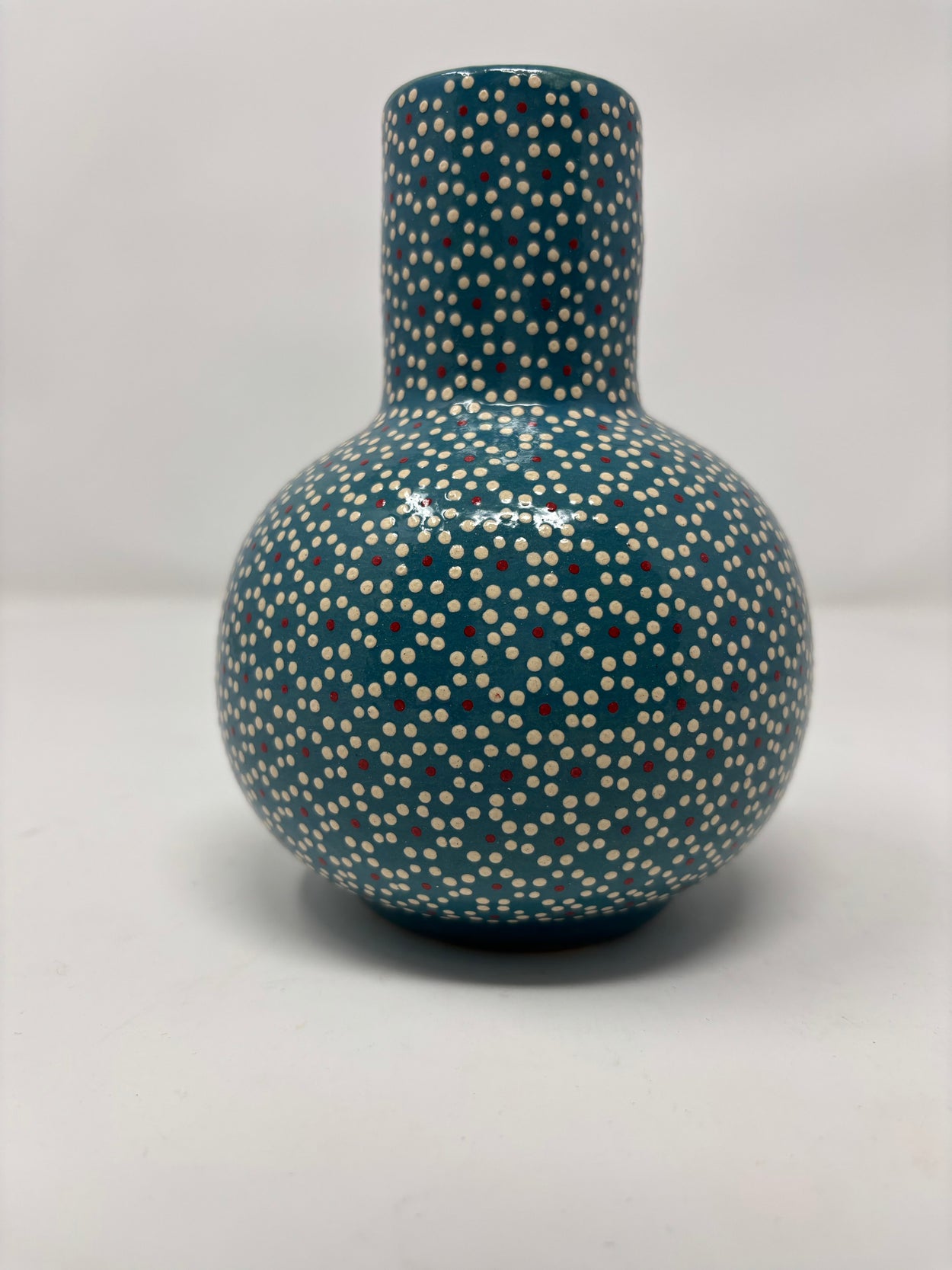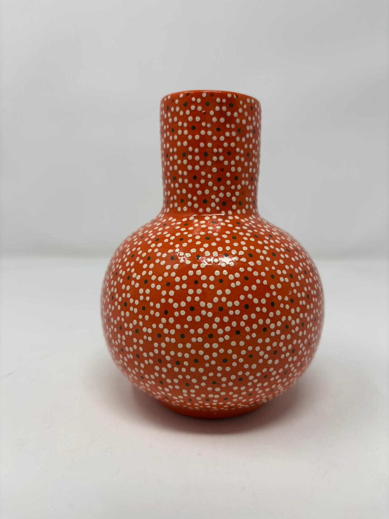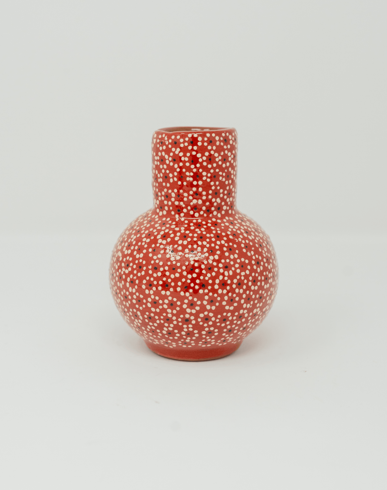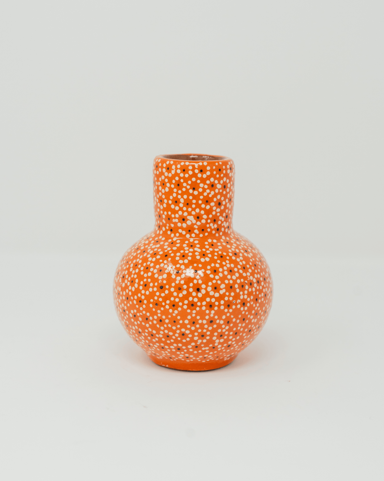 Handmade ceramic bud vase with Mexican cherry flower design from Capula, Michoacán, Mexico.