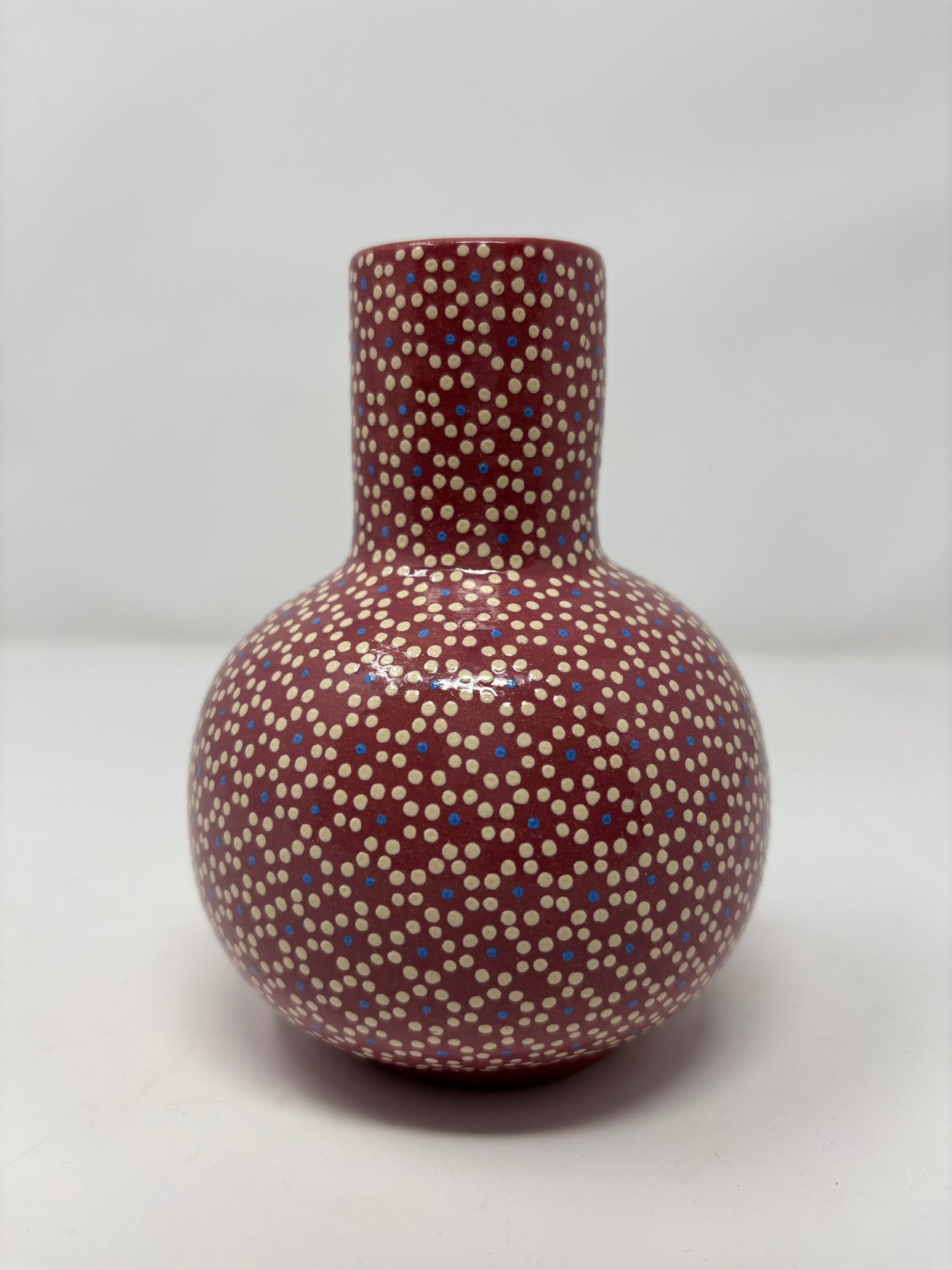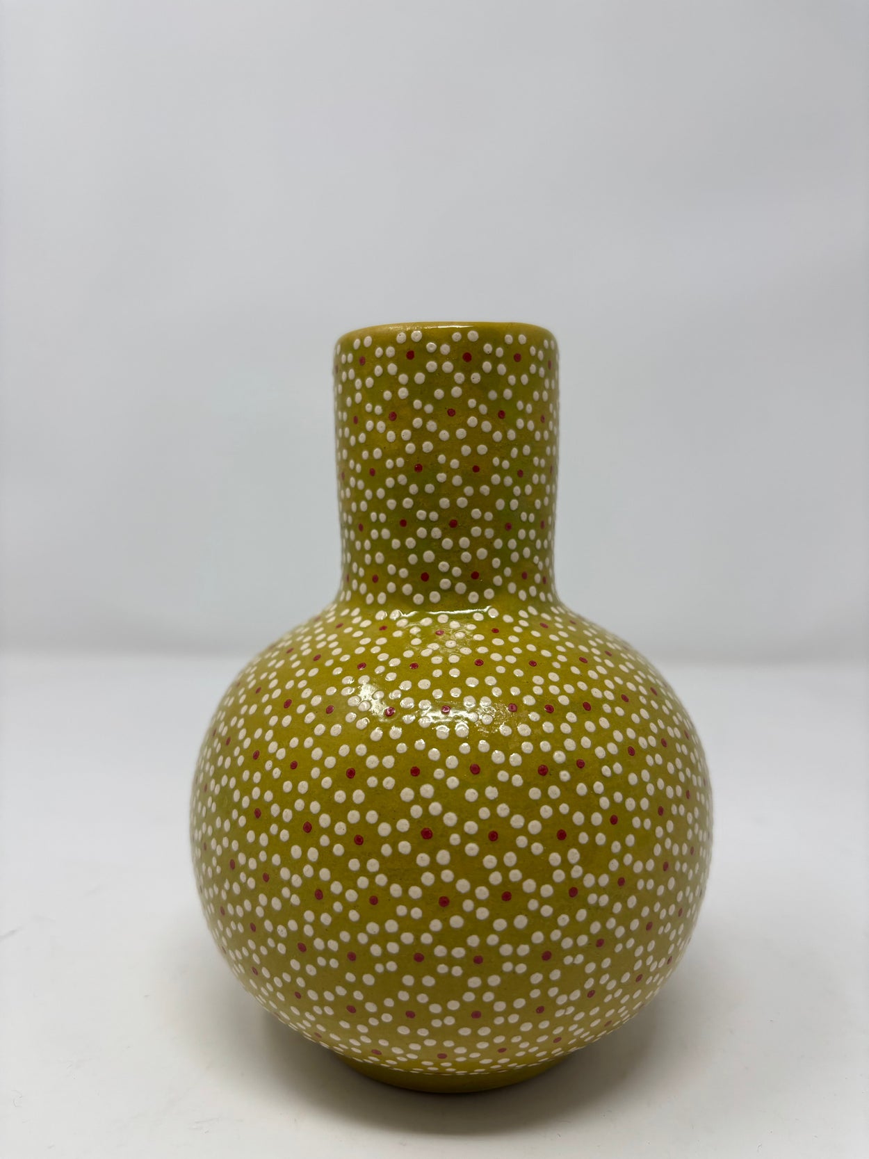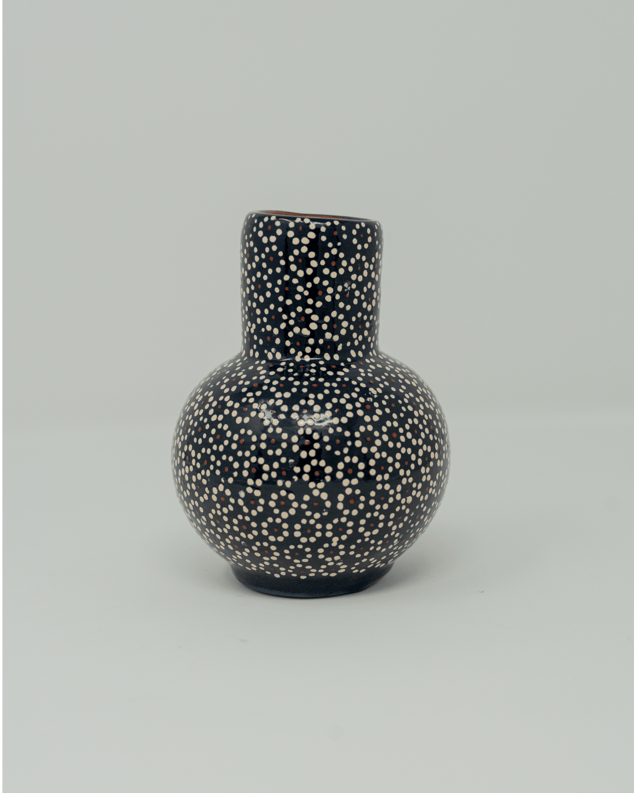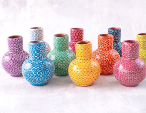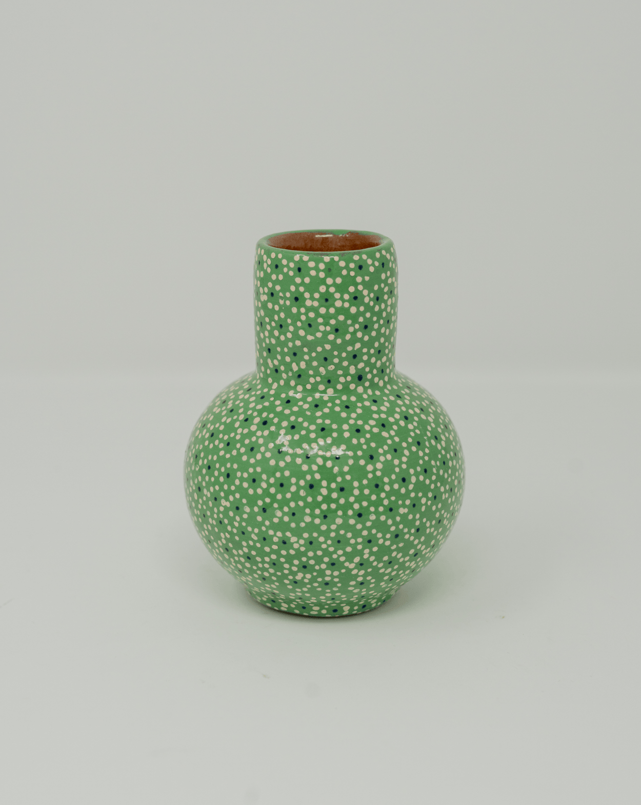 Handmade ceramic bud vase with Mexican cherry flower design from Capula, Michoacán, Mexico.